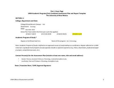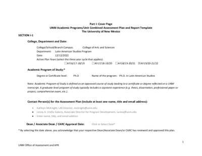 - 2018/2019 UNMV Liberal Arts AA Assessment Plan