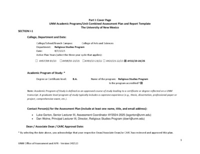- Plans or reports only → [Degree Program] Assessment [Plan OR Report]